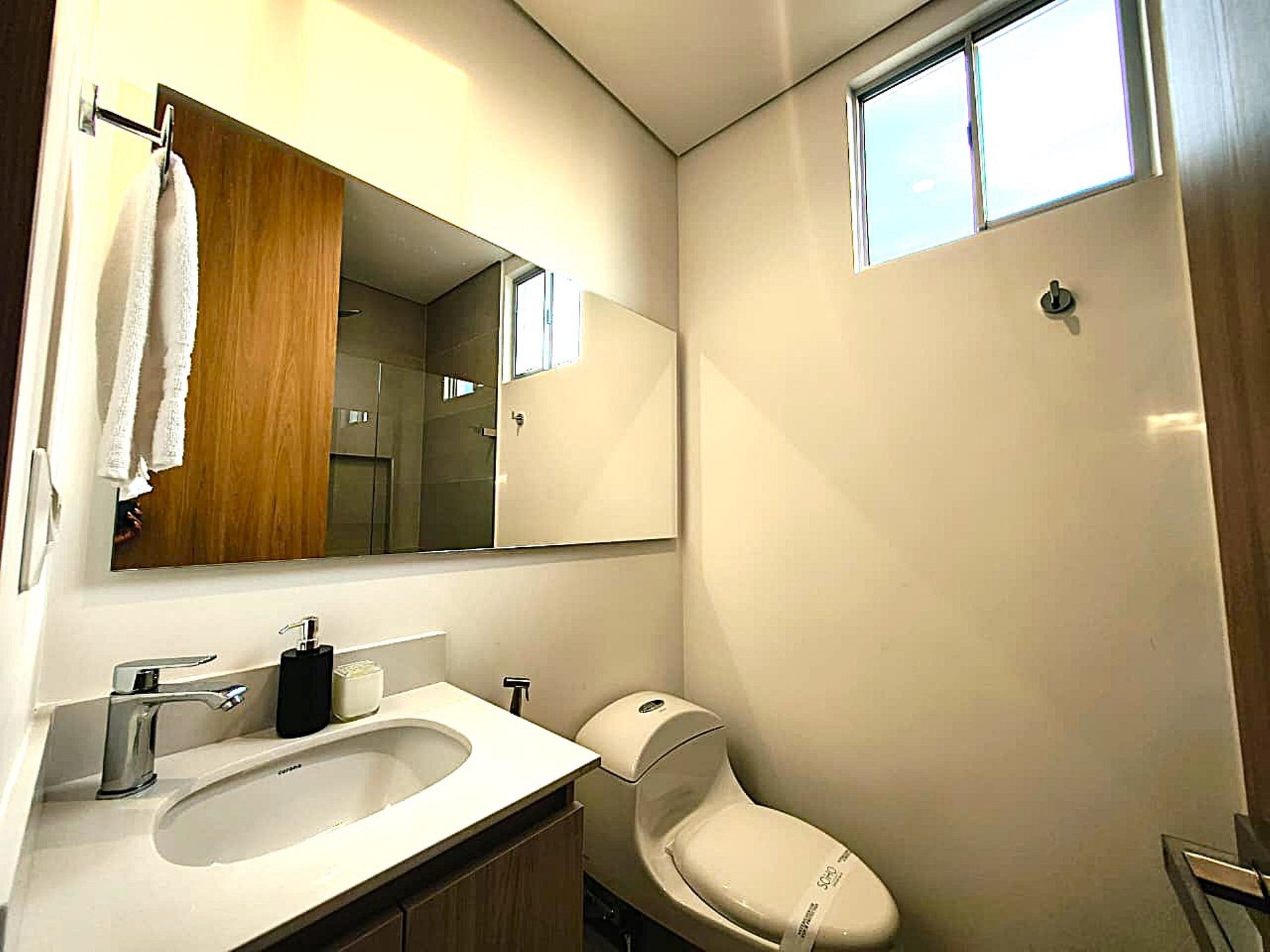 - Incluye estándares como una toalla por huésped, kit de amenidades con jabón hotelero, papel sanitario y jabón lavavajillas.
