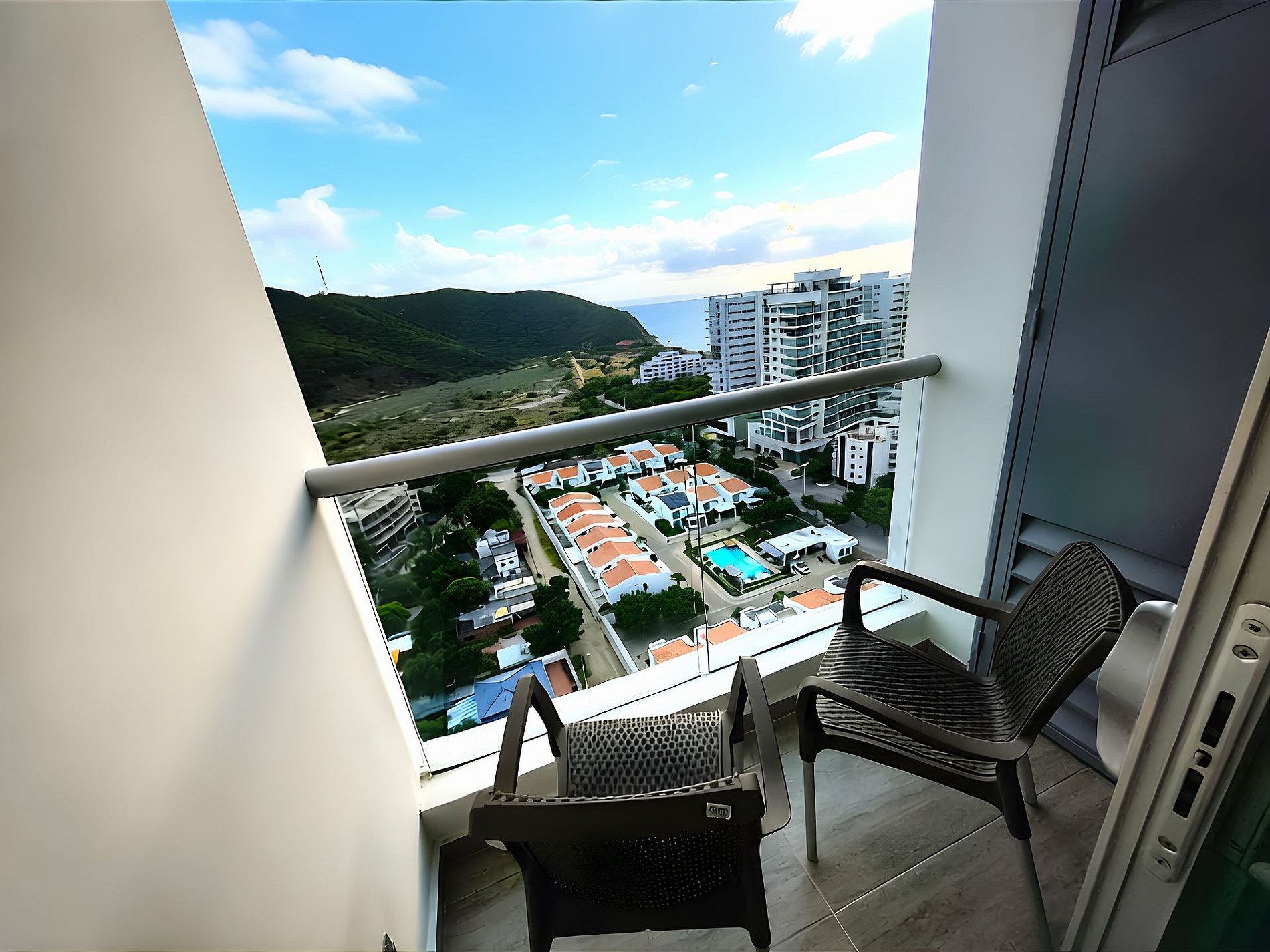 - Alquila este hermoso apartamento y disfruta de su estupendo balcón con vista hacia las montañas y el mar, sus exclusivas áreas comunes: lobby, recepción 24 horas, piscina - piscina infantil con juegos. Parqueadero Gratuito privado en cubierta # 103.