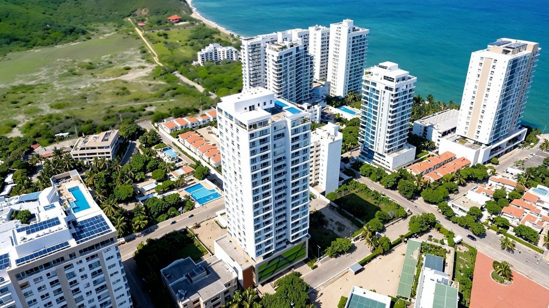 El edificio Salguero Sunset está ubicado en la exclusiva zona de Playa Salguero, a pocos metros del mar. Rodeado de modernos edificios residenciales y turísticos, ofrece un estilo privilegiado con todas las comodidades: parqueadero en cubierta, amplias áreas comunes y una espectacular piscina en la azotea desde donde se disfrutan vistas al mar y atardeceres de ensueño. Esta zona se distingue por la tranquilidad de sus playas y su cercanía al reconocido edificio Reserva del Mar, consolidándose como uno de los sectores más apetecidos de la ciudad.