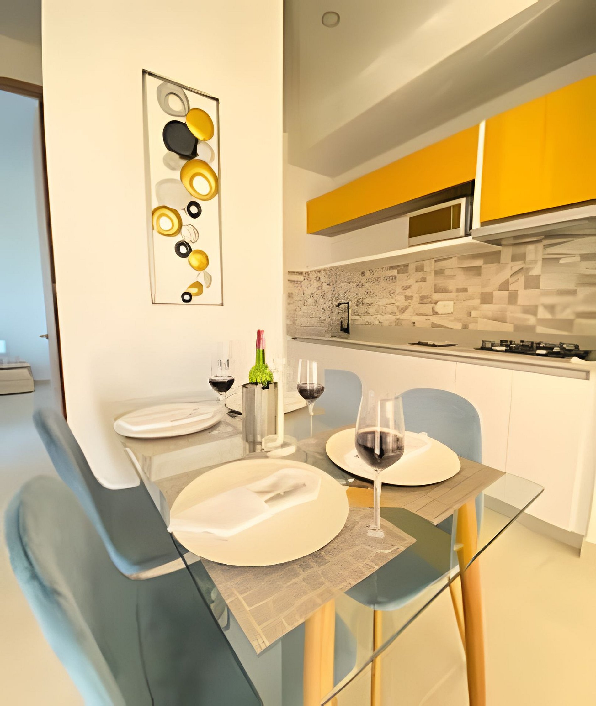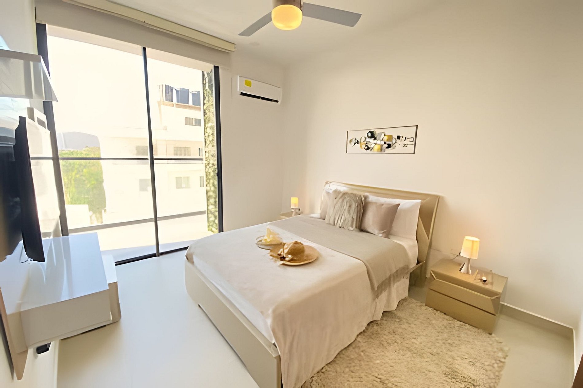 El apto es muy acogedor y tiene una vista hermosa, mejoraría el tema de los aires acondicionados y el early check in ya Que hay otros apartamentos muy bien equipados y más flexibles. De resto el apto es muy cómodo y perfecto para dos parejas. El edifico es muy bonito y la zona tranquila