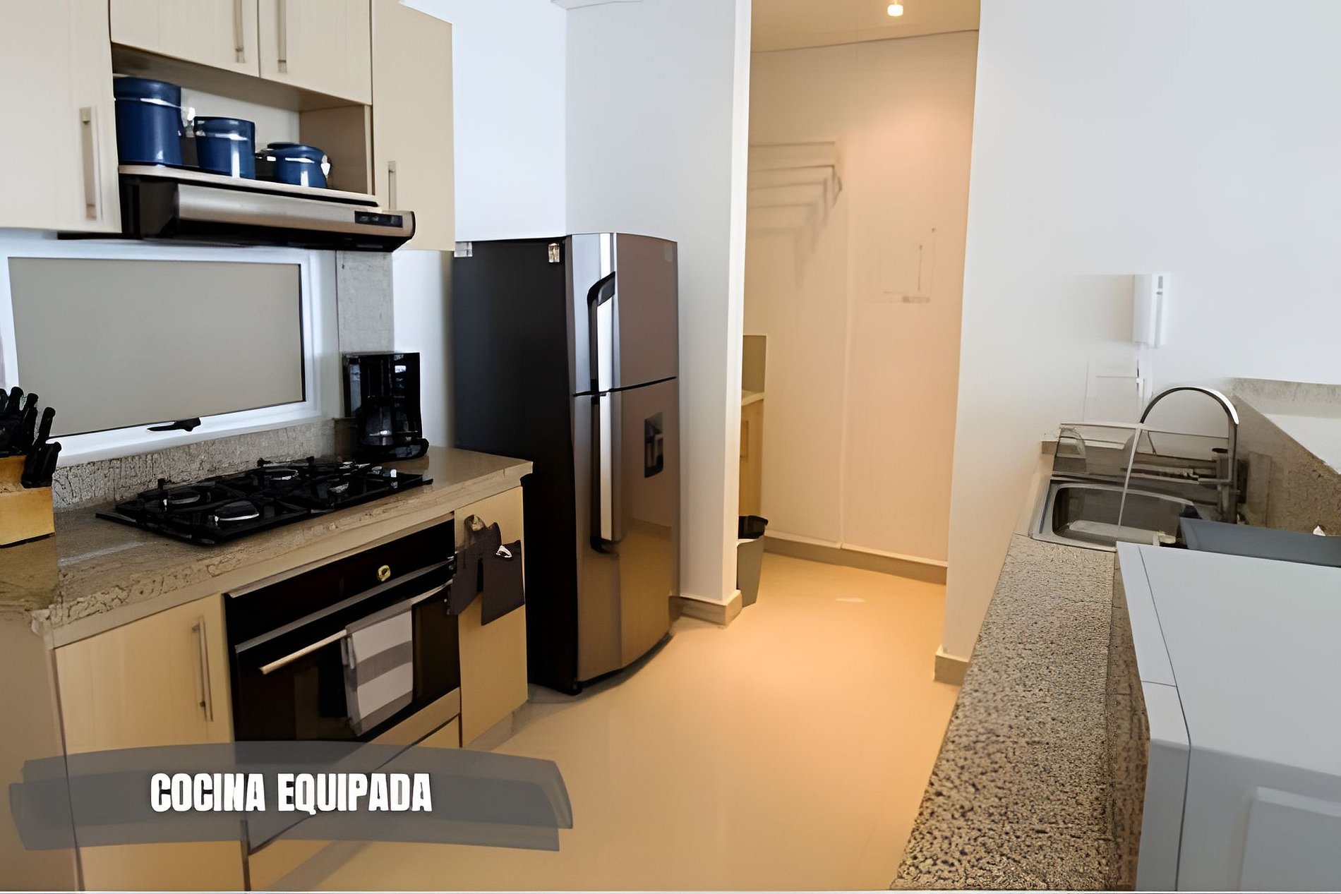 - Incluye estándares como una toalla por huésped, kit de amenidades con jabón hotelero, papel sanitario y jabón lavavajillas.