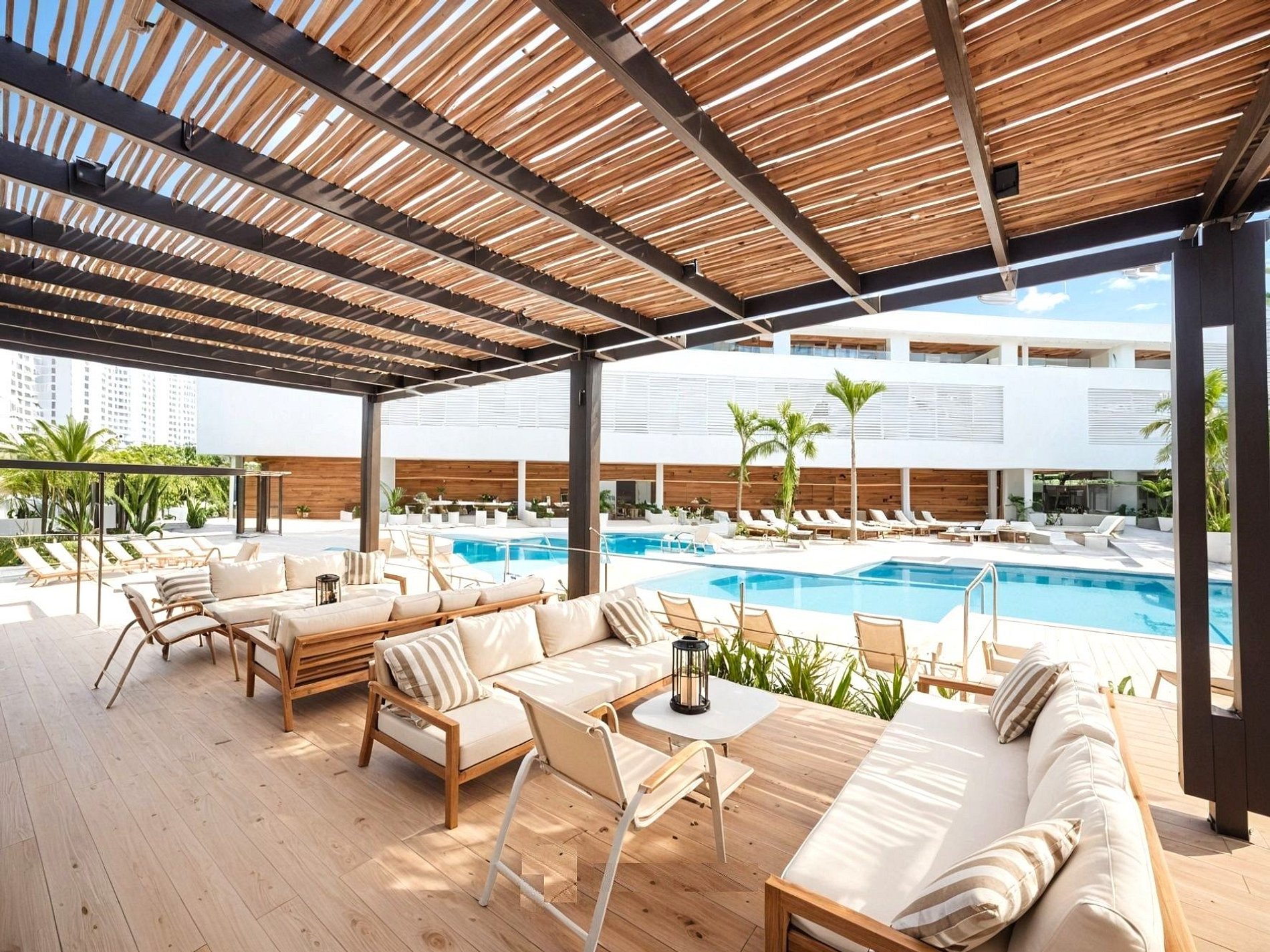 - Piscinas para adultos, piscinas para niños y jacuzzis. Piscinas en la azotea con vistas espectaculares al mar, la sierra y atardeceres increíbles.
