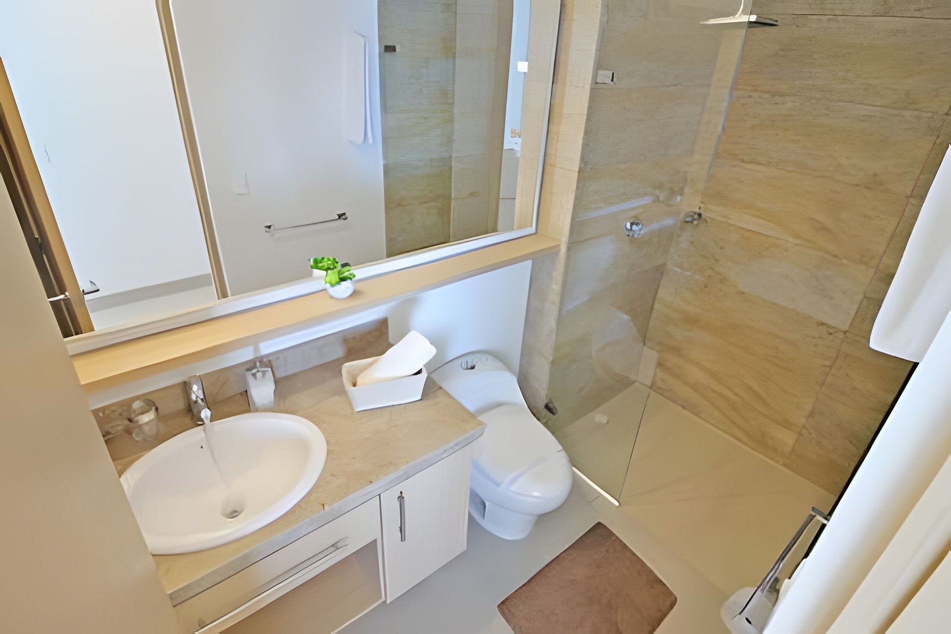 - Incluye estándares como una toalla por huésped, kit de amenidades con jabón hotelero, papel sanitario y jabón lavavajillas.