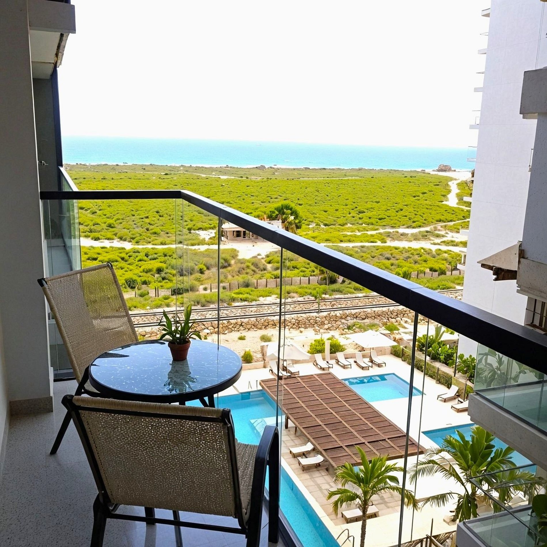 Este Aparta estudio combina confort y sofisticación, brindándote todo lo necesario para que tu estancia sea realmente placentera. Disfruta de su balcón con las hermosas vistas al Mar y piscinas, el acceso cercano a la playa y las excepcionales comodidades que hemos preparado para ti. Si buscas unas vacaciones inolvidables en un entorno tranquilo y exclusivo, este es el lugar perfecto. ¡Te esperamos para ofrecerte una experiencia que superarás todas tus expectativas!