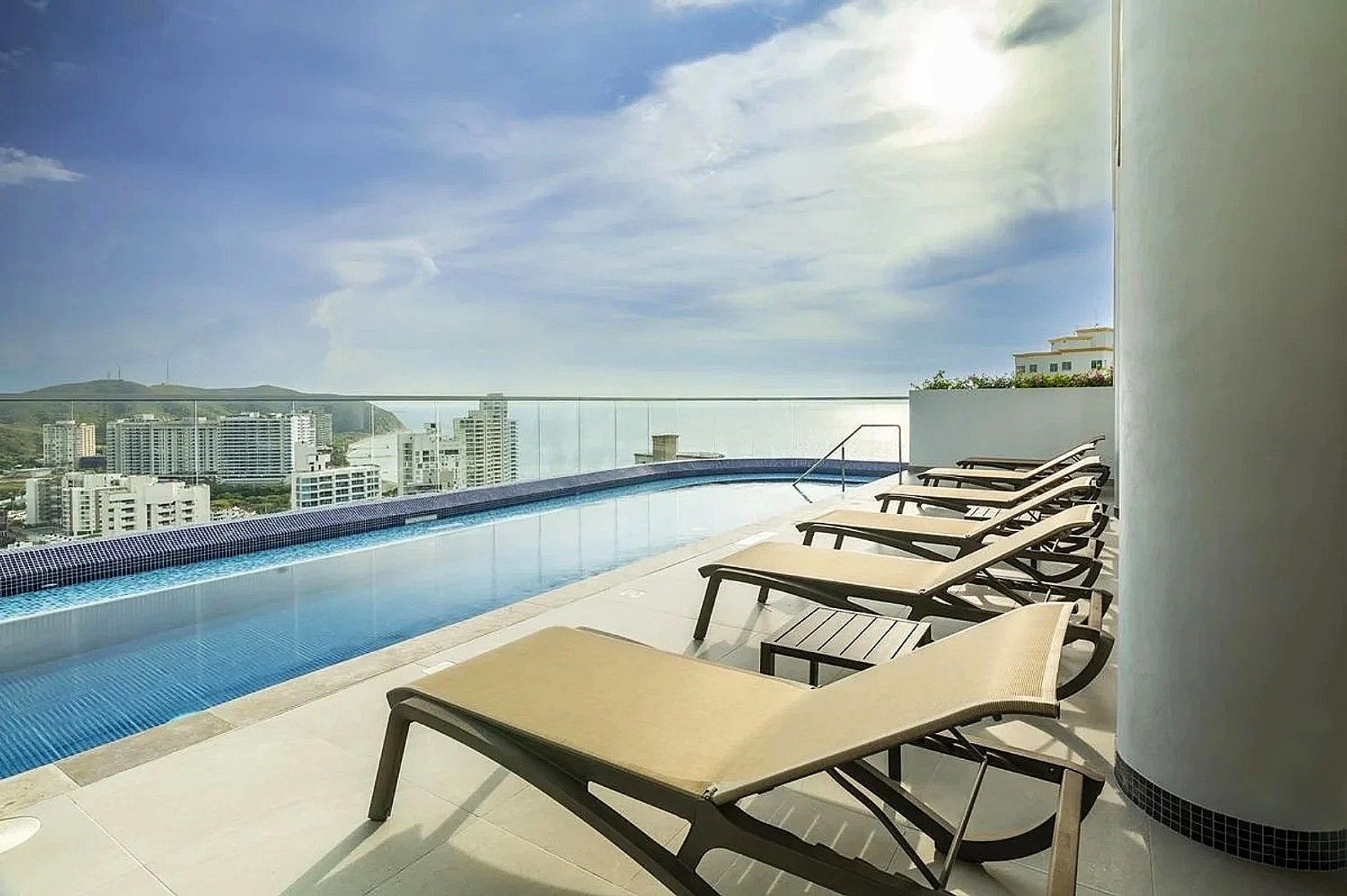 - Alquila este agradable Apartamento y disfruta de su estupendo balcón con hermosas vistas al Mar y a la Ciudad, sus exclusivas áreas comunes: lobby, recepción 24 horas, Piscina para adultos y niños, gimnasio, baño turco, zona BBQ y Parqueadero Gratuito privado en cubierta Sótano 2 #2.