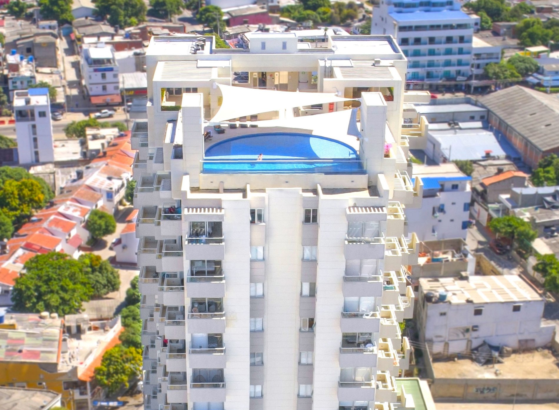 - El edificio cuenta con piscina, en la azotea con borde infinito y vistas al mar.